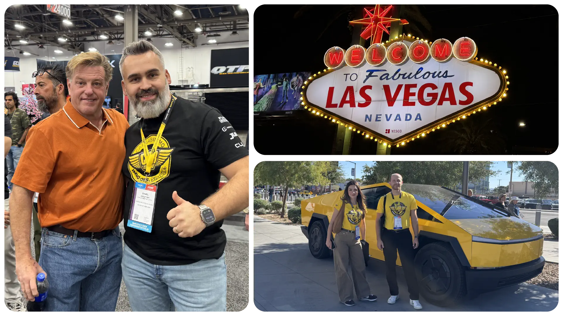 Polish Pavilion at AAPEX 2025Our Team talked met with our customers as well as did press interviewsLeft: With Chip Foose, automotive legend; Right: Famous Las Vegas Sign, CarLabImmo Team outside the expo building